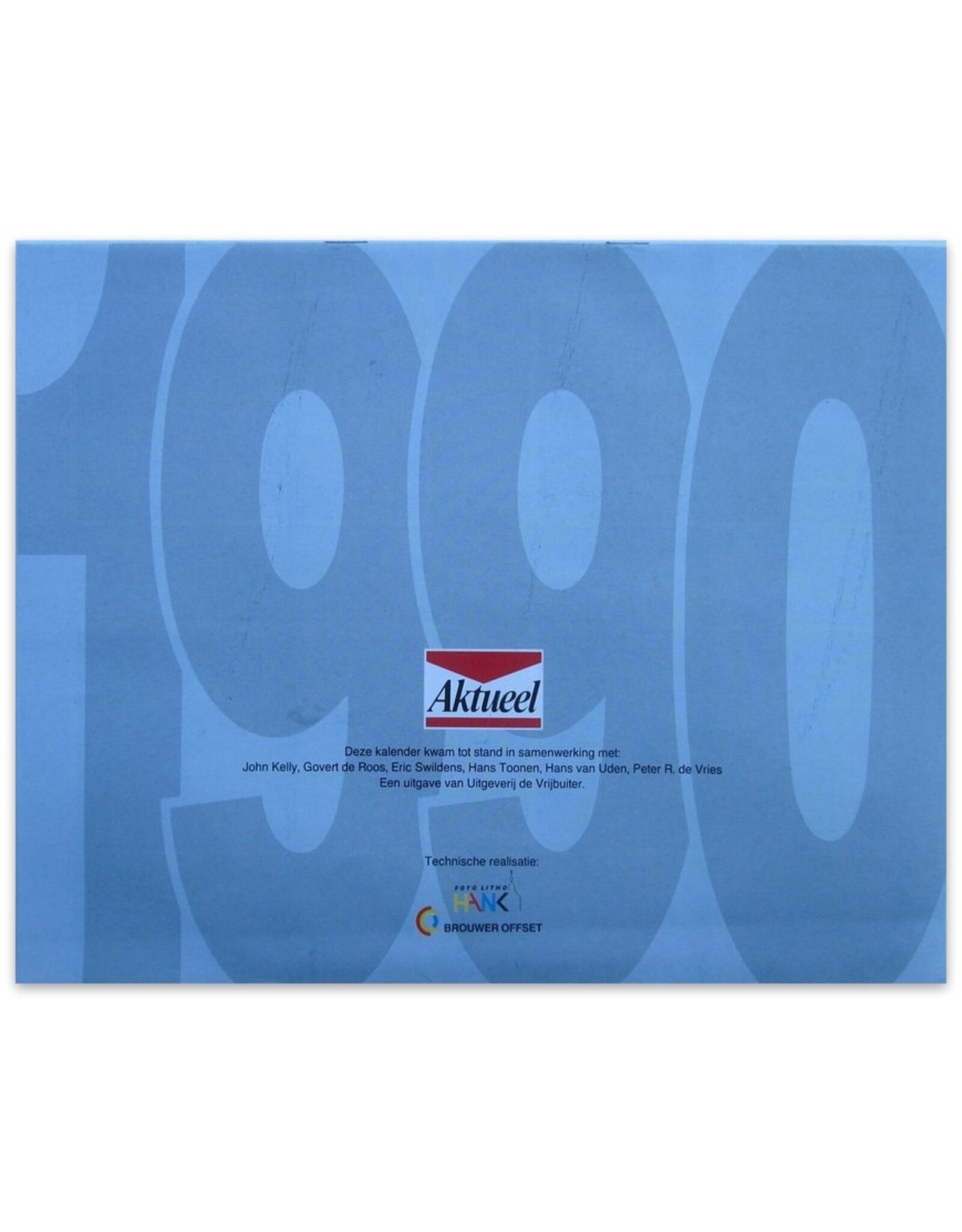Peter R. de Vries & Govert de Roos [et.al.] - Aktueel Hollands Schoon [Kalender 1990] - [N.p.] - Uitgeverij de Vrijbuiter - [1989] - 1st edition - [16] pp - Stapled wrappers - 22 x 27,5 cm.